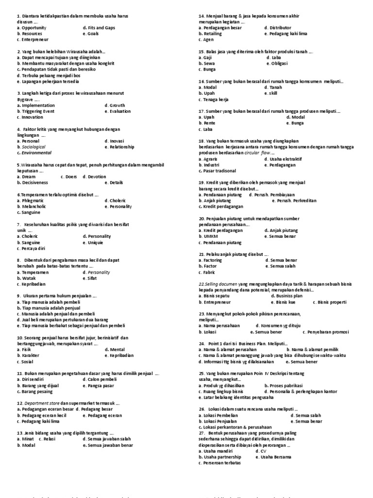 Secara harfiah kata wirausaha berasal dari kata wira artinya berani, sedangkan usaha adalah. Dibawah ini yang termasuk operasi perbandingan adalah: Fungsi bahasa indonesia sebagai bahasa negara adalah. Nah, pada kesempatan kali ini kami akan berbagi latihan soal uts/pts kelas 4 tema 1 dilengkapi dengan kunci jawaban dan pembahasan. Soal dan jawaban sim by emyhux_zotax in book excerpts.