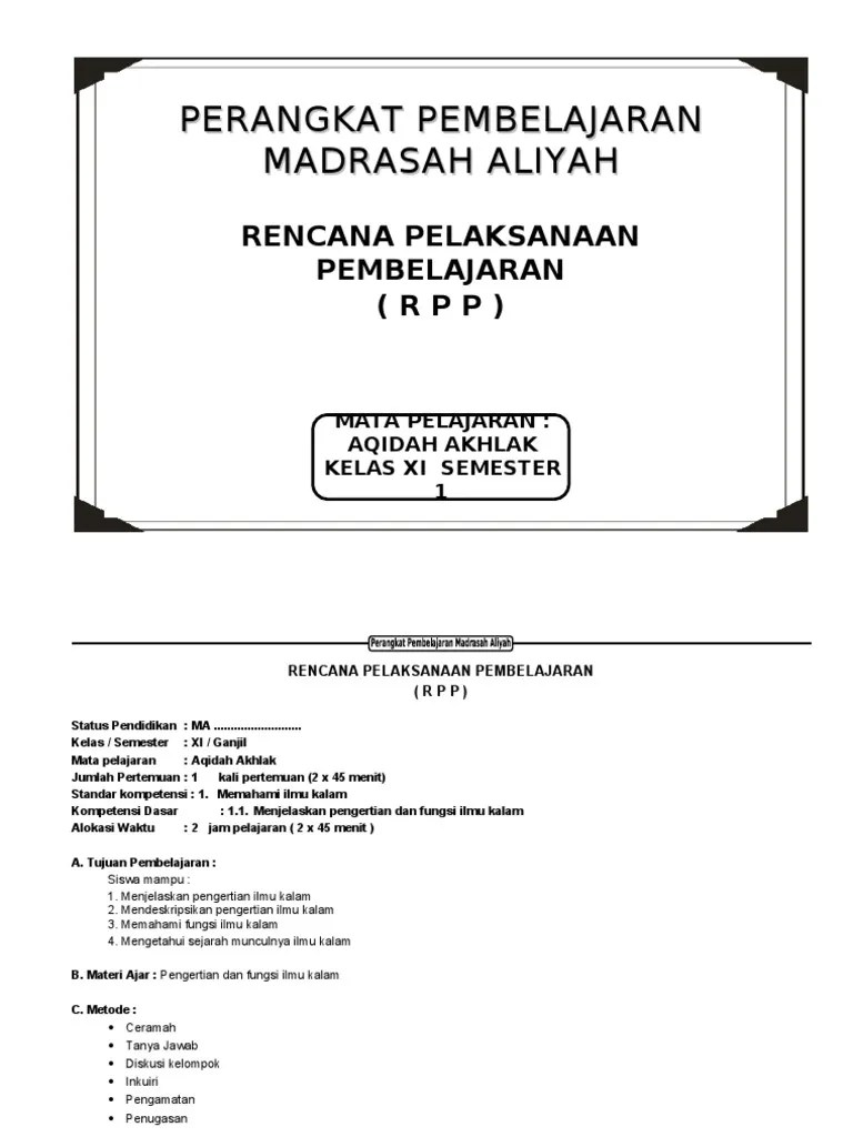 Materi pembelajaran yang sudah kami siapkan rencana pelaksanaan pembelajarannya untuk akidah akhlak kelas xi ini adalah: